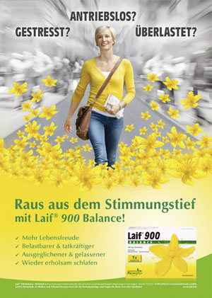 Auch pflanzliche Arzneimittel aus der Apotheke können eine wirksame Hilfe sein. Laif® 900 Balance mit hochdosiertem Johanniskrautextrakt hat gleichzeitig eine stimmungs-aufhellende und ausgleichende Wirkung. Es hilft Ihnen, wieder ausgeglichener und gelassener zu werden und neue Kraft und Lebensfreude zu gewinnen, um die Herausforderungen des Alltags zu meistern.