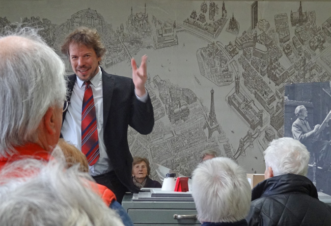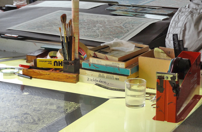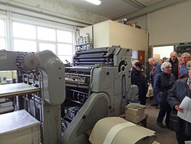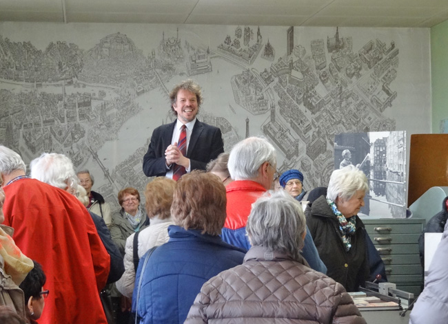 Fortgesetzt wurde der Tagesausflug beim Bollmann-Bildkarten-Verlag am Braunschweiger Flughafen. Herr Bollmann berichtete mit Begeisterung vom Entstehen des Verlags, von teils riskanten Fotoaufnahmen, die den von Hand gezeichneten Stadtplänen vorausgehen und von weiteren Arbeitsschritten, um die außergewöhnlichen Exemplare zu erstellen. Passend zu den Zielen der Tagesfahrt vermittelten die Apothekerinnen unterwegs im Bus Wissenswertes zu "Sternstunden der Arzneimittelforschung". Für alle Kunden war es ein erlebnisreicher Tag mit vielen neuen Eindrücken in fröhlicher Gesellschaft.   (Text: Doris Scheider)