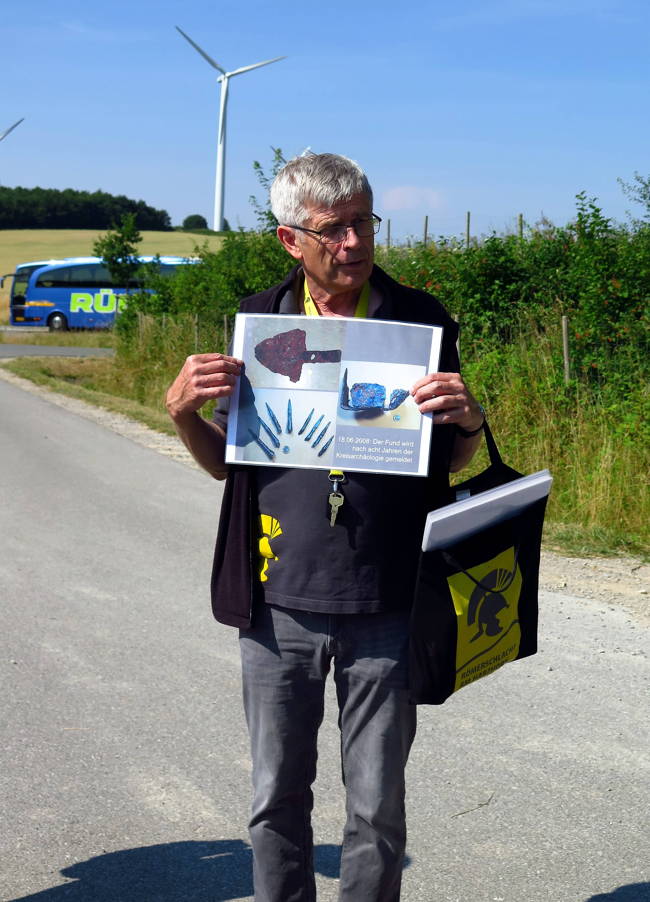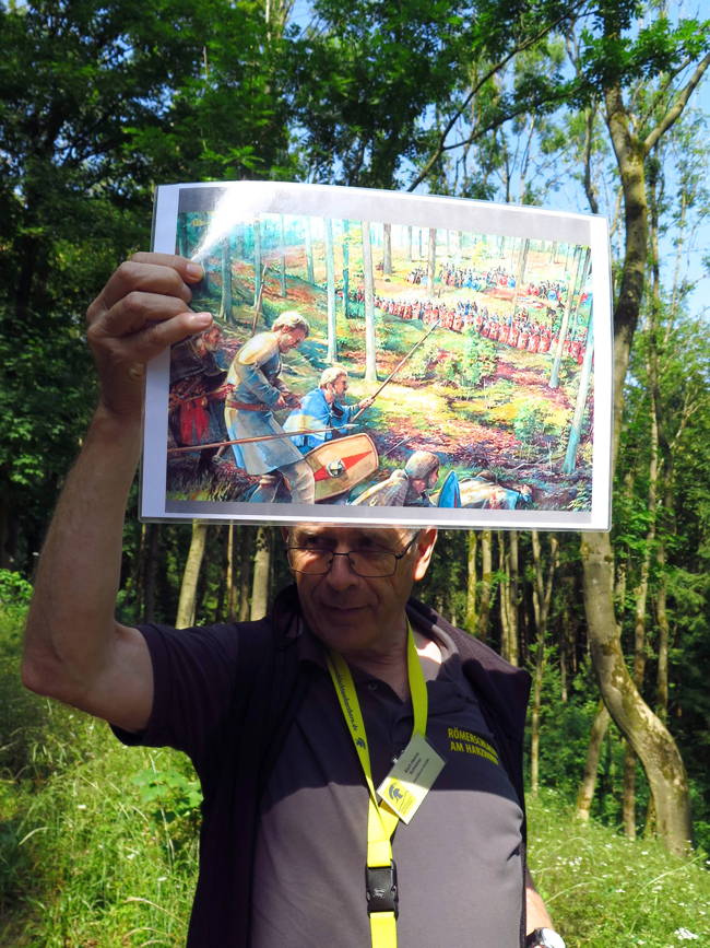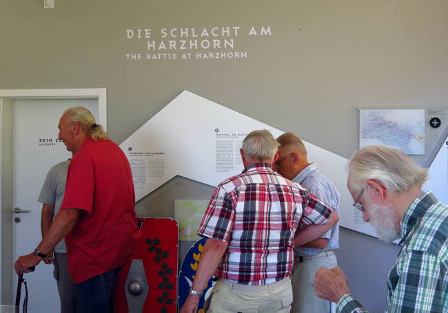Kürzlich startete der Bus Richtung Bad Gandersheim und brachte die Tagesgäste zunächst zum Harzhorn, um dort in die Geschichte der Römerschlacht anno 235/236 n. Chr. eintauchen zu können. Einst kämpften dort die Römer unter Führung des Kaisers Maximilian Thrax gegen die Germanen und hinterließen zahlreiche Spuren ihrer Kampfhandlungen im Gelände. Erst vor 10 Jahren begannen dort die Ausgrabungen und brachten mehrere tausend Funde zu Tage, die archäologisch und wissenschaftlich bedeutend sind und zu neuen Erkenntnissen über militärische Operationen der römischen und germanischen Armee führten. Auf dem Infopfad bzw. im Infogebäude wurden den Gästen interessante Erkenntnisse geboten.