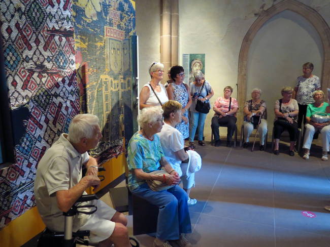 Später ging die Reise weiter ins Landgasthaus, wo ein schmackhaftes Mittagsbuffett zum Schlemmern und Genießen einlud. Am Nachmittag standdas ehemalige Kloster Brunshausen und seine über 1200-jährige Geschichte auf dem Programm. Es wurde als Benediktinerinnenkloster gegründet und erlebte eine wechselvolle Geschichte, z.B. durch Reformation oder Kriege. Selbst Wolfenbüttler Herzöge mischten dabei mit. Heute gehört das Kloster der Stadt Gandersheim und ist ein Kulturzentrum. In der Klosterkirche beeindruckte die Ausstellung zu starken Frauen, im Sommerschloss die Wandmalereien alter Meister und in den Gartenanlagen die vielen von Künstlern geschaffenen Skulpturen
